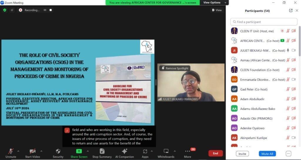 Participants called for stronger legal provisions to empower citizens in asset recovery. The African Center and CLEEN Foundation were recognized for fostering collaboration between state and non-state actors to enhance transparency and sustainable development.